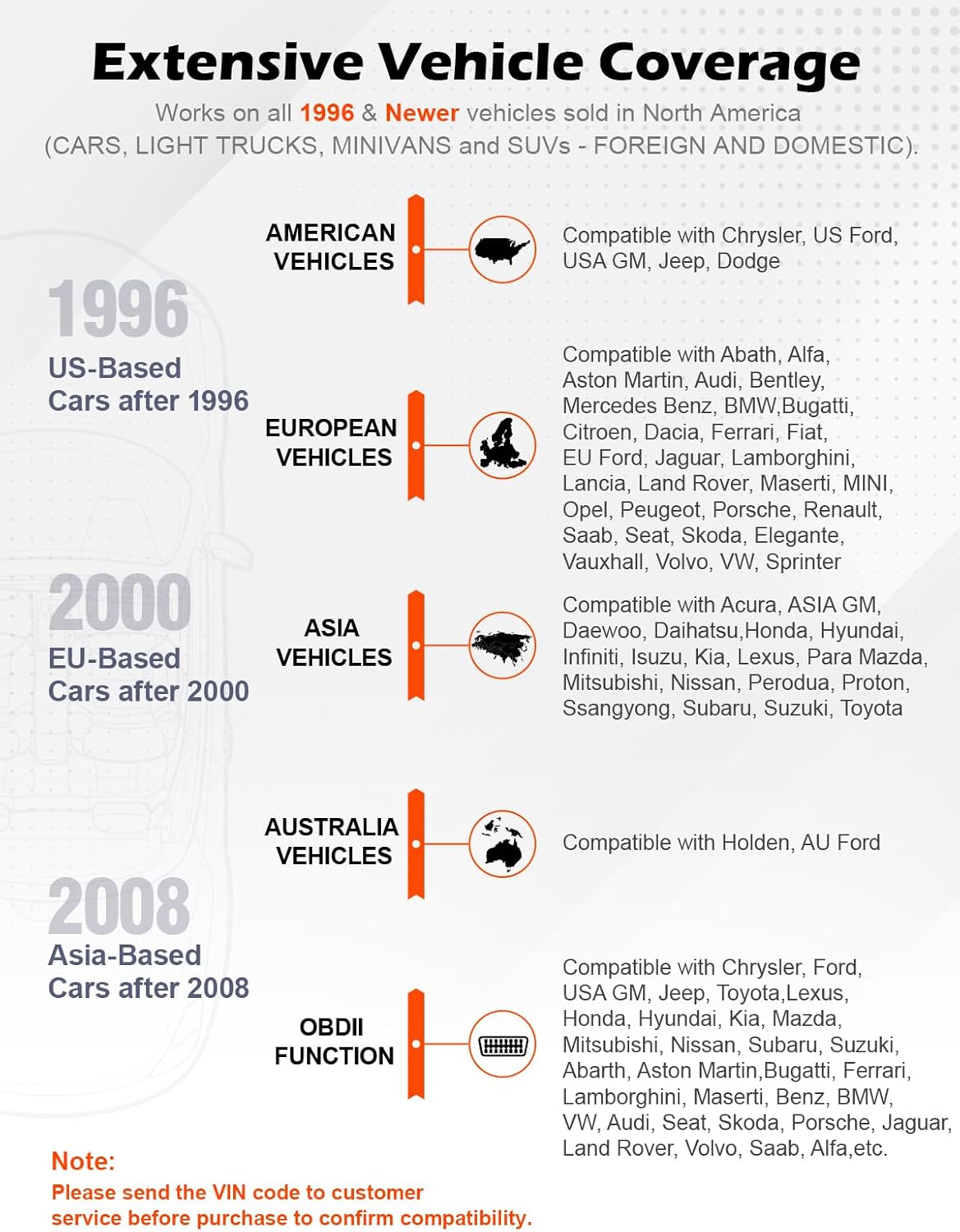 Broad Compatibility: Works on 1996+ U.S. vehicles, 2000+ EU/Asia models, and supports all 5 major OBD2 protocols (CAN, KWP2000, ISO9141, J1850 VPW, J1850 PWM).