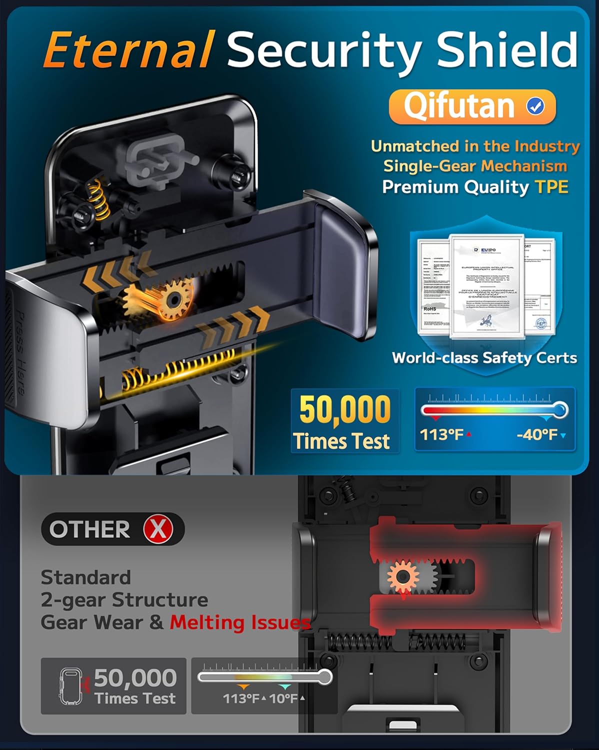 Stainless steel vent hook with rubber padding grips firmly without scratching. Anti-slip silicone ensures zero wobble—even on bumpy roads. (Not compatible with circular vents.)