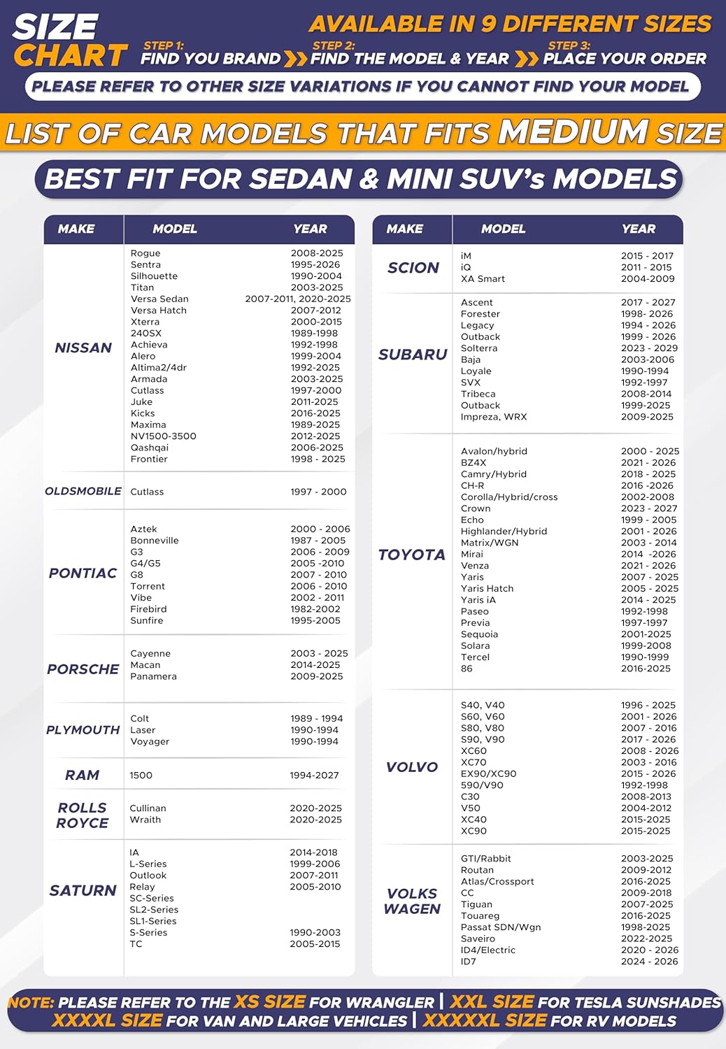 This Medium size (64"x32") fits most windshields. For other models, refer to our sizing chart to ensure the perfect fit.